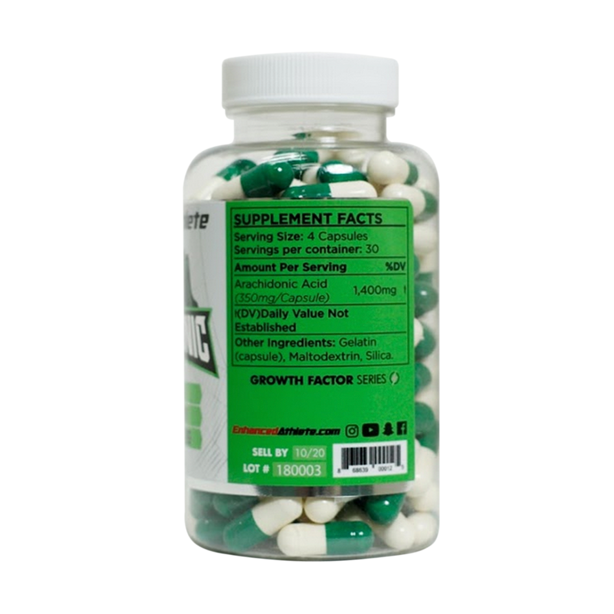 El ácido araquidónico es un acido graso poliinsaturado de la serie omega-6 con la estructura química 20:4 (tiene una cadena de 20 carbonos con 4 enlaces dobles). Juega un papel esencial en el crecimiento y reparación del tejido muscular, es un componente dietético esencial en el proceso de hipertrofia muscular